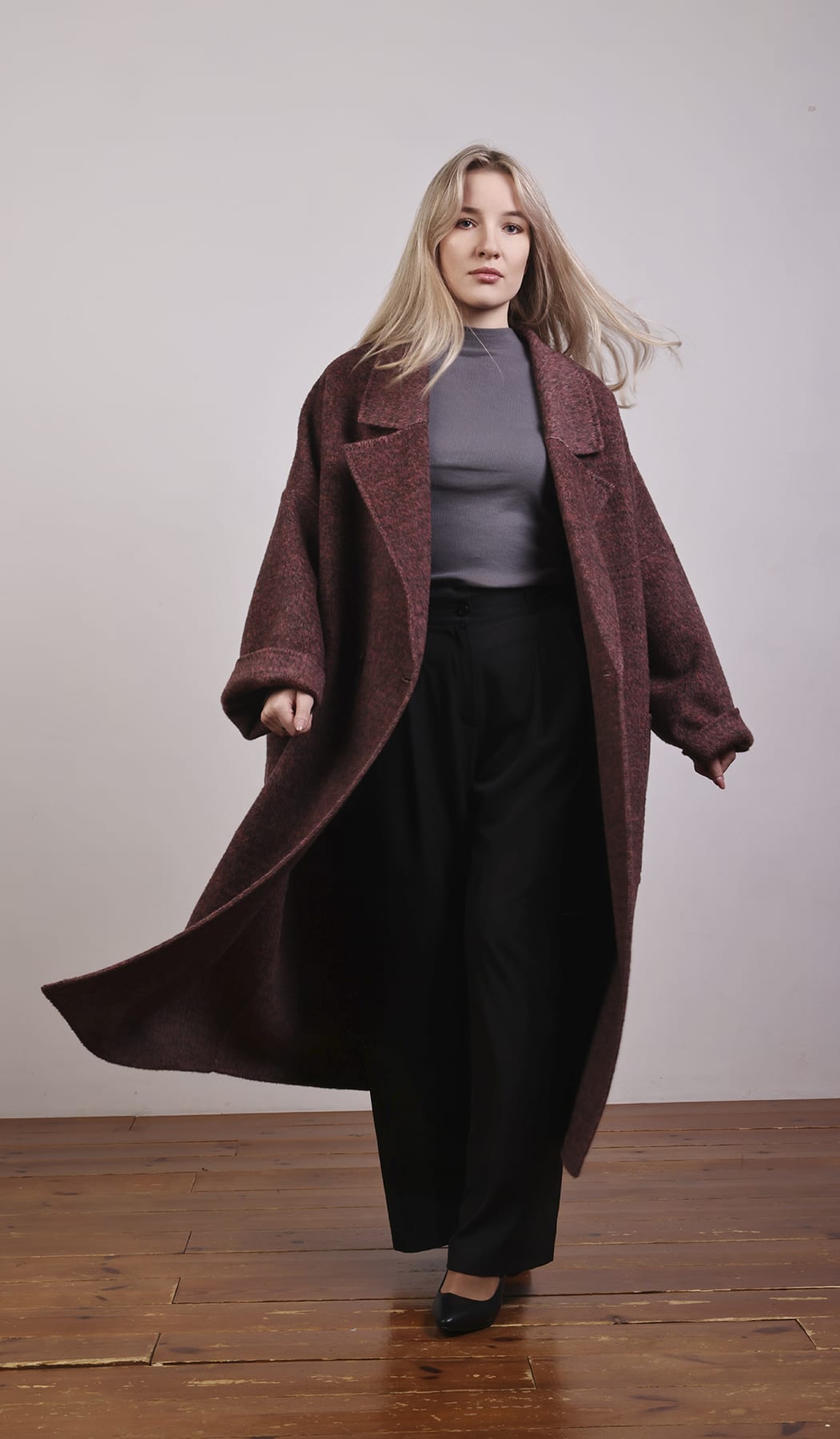Двубортное пальто из итальянской шерсти. Чёткие линии, структурированные плечи.
