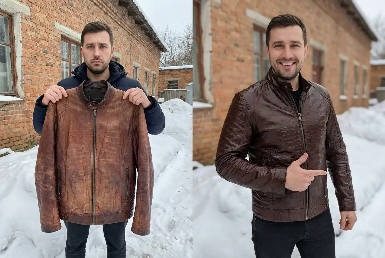 Изношенная дублёнка → профессиональная чистка и восстановление.
