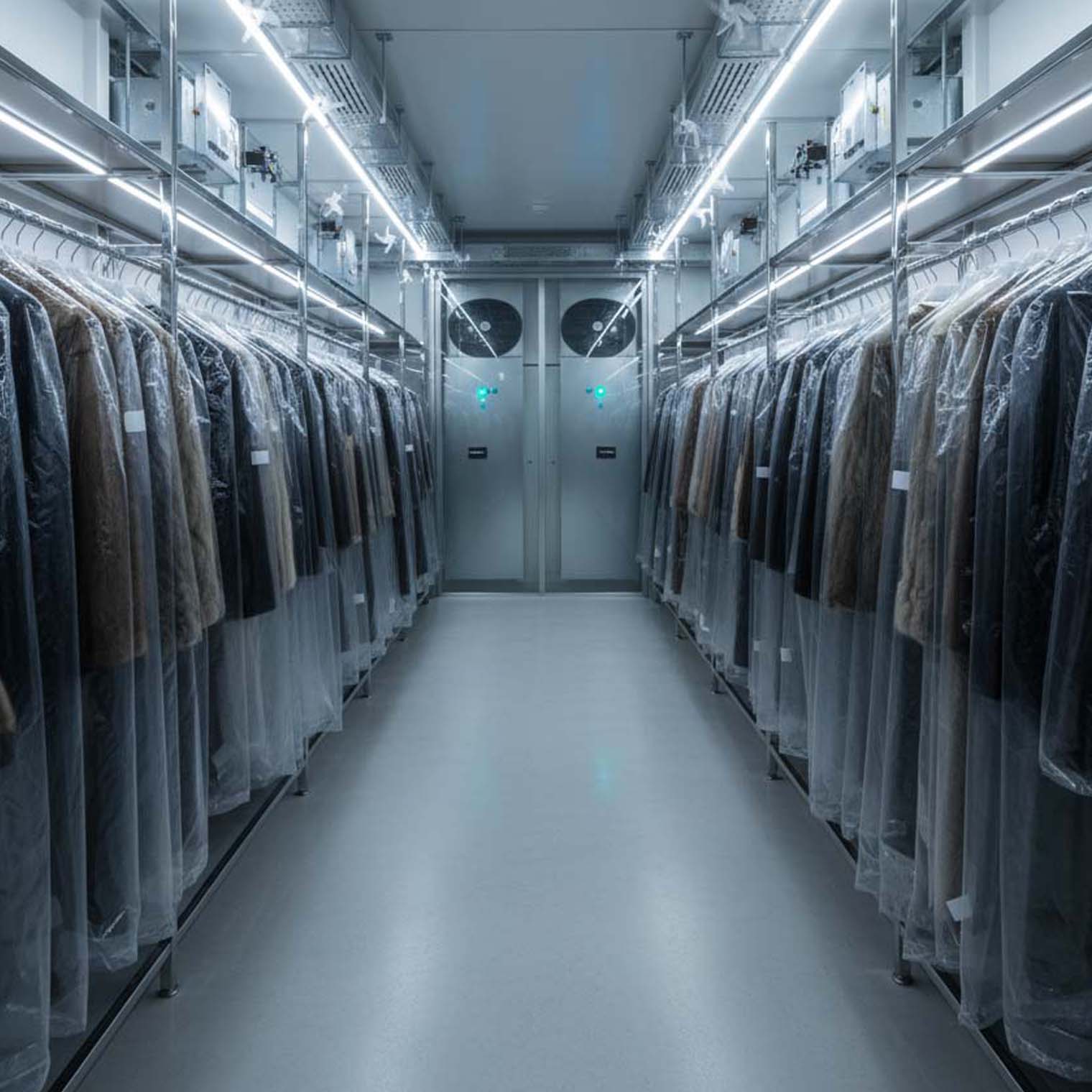 Хранение шуб при +5 °C и влажности 50–60 %. Защита от моли, страховка изделия.