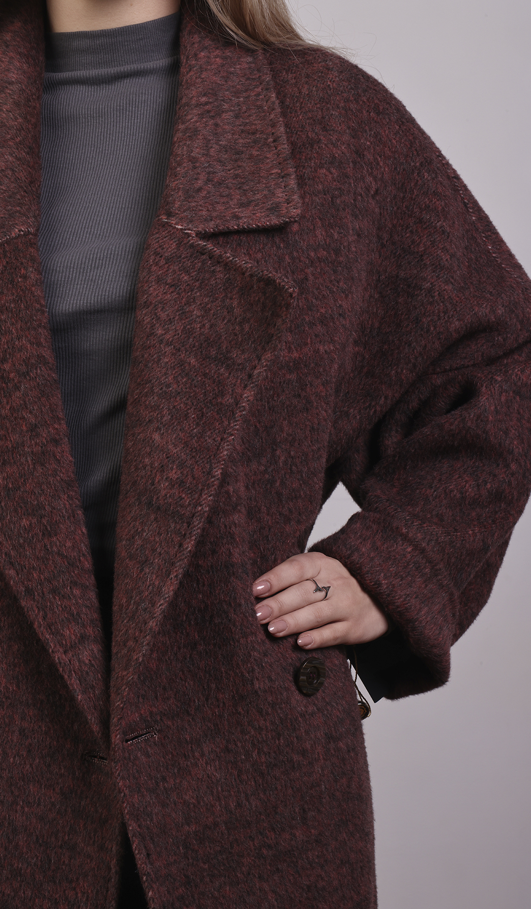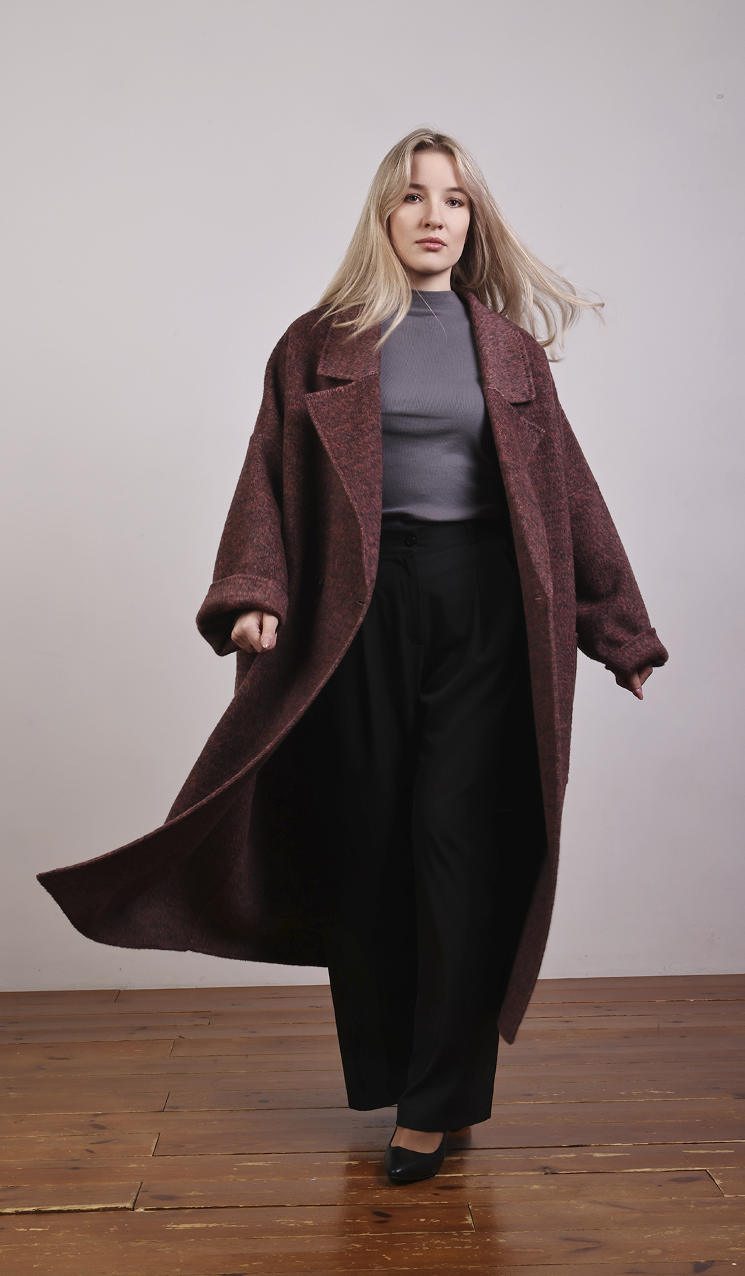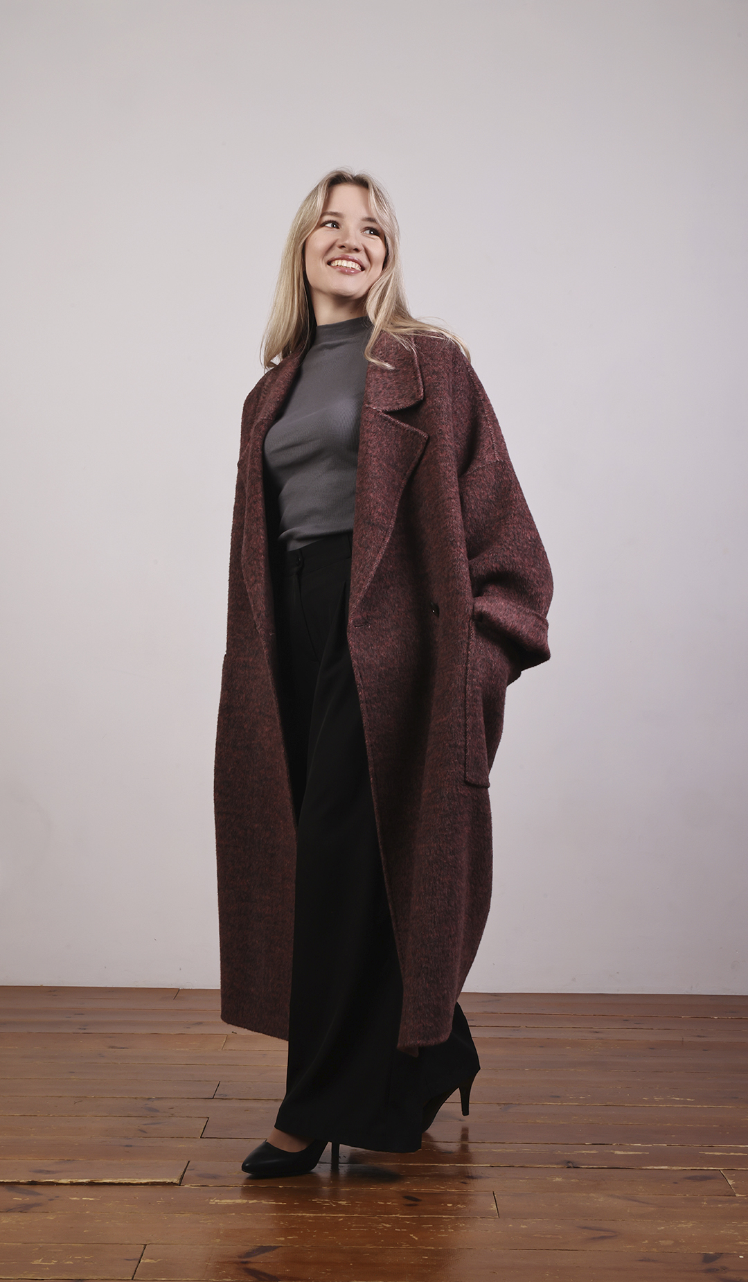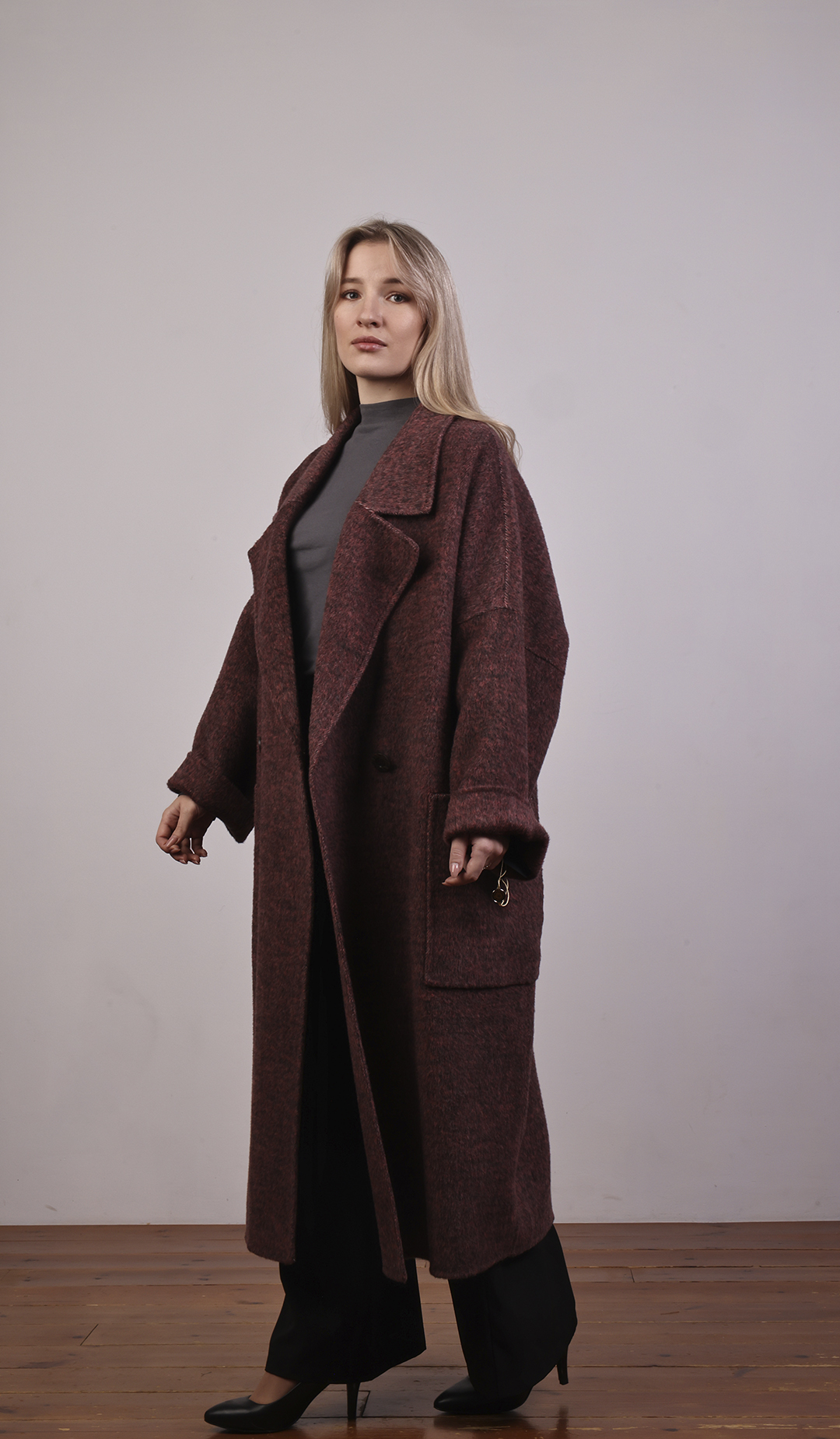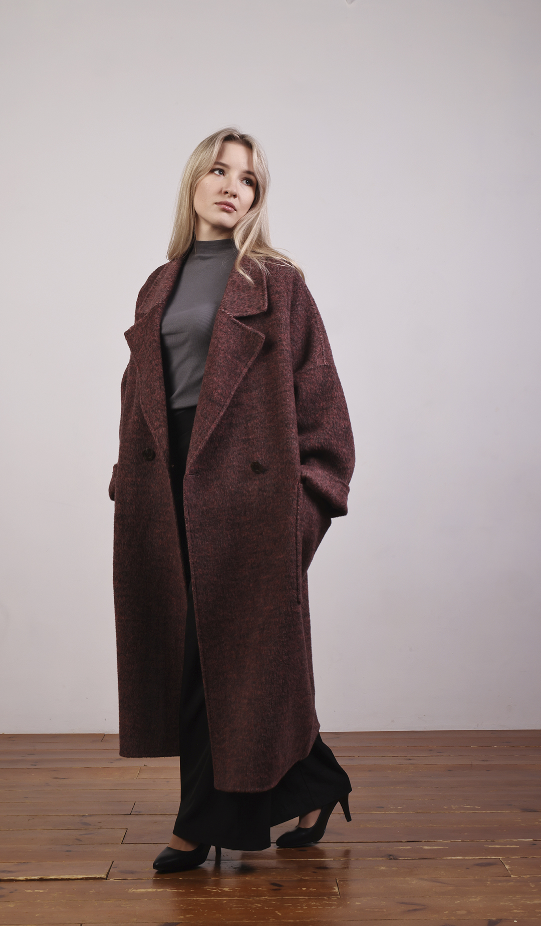 Двубортное пальто из итальянской шерсти. Чёткие линии, структурированные плечи.