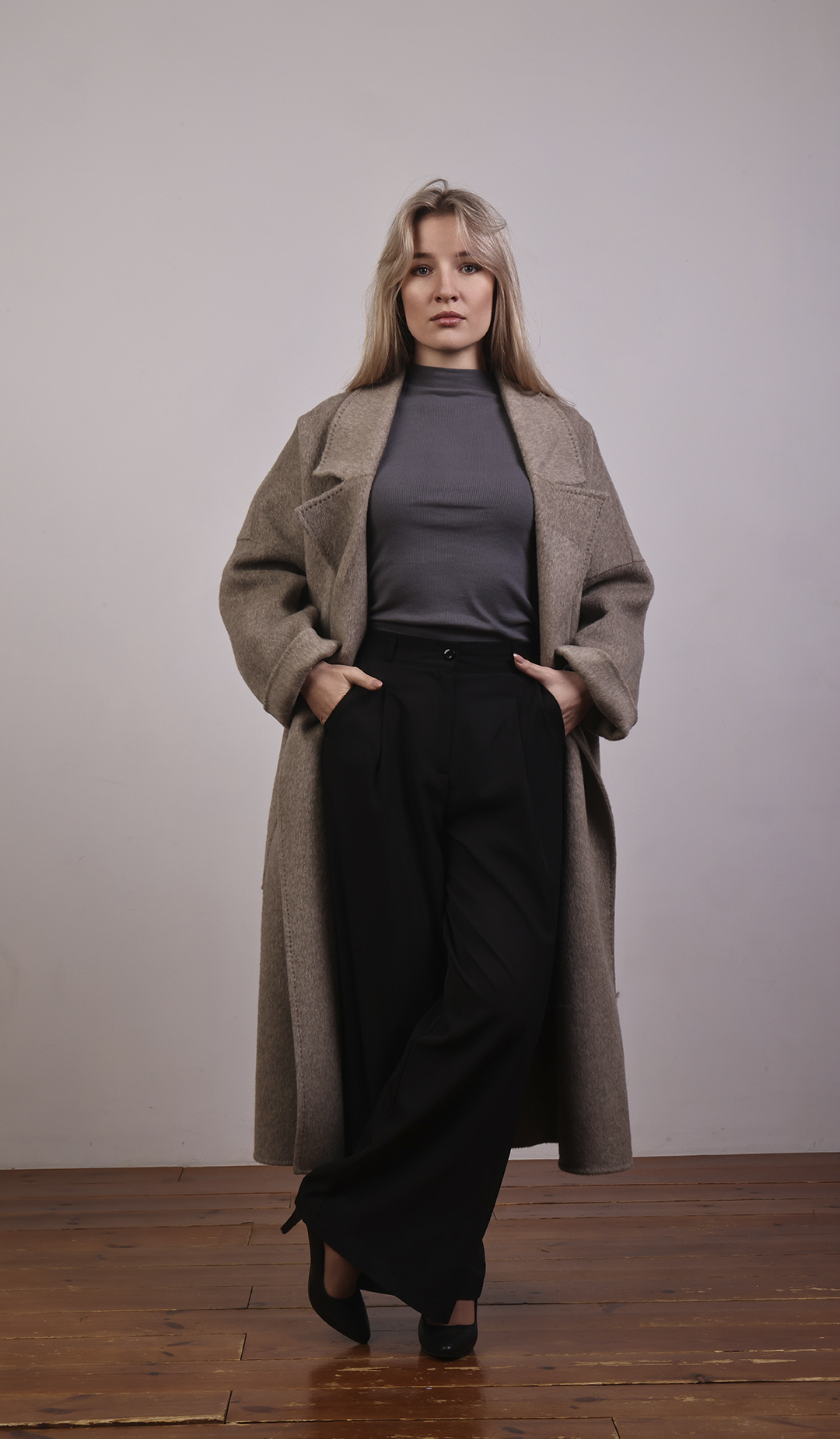 Лаконичное пальто прямого кроя. Универсальная модель на каждый день.