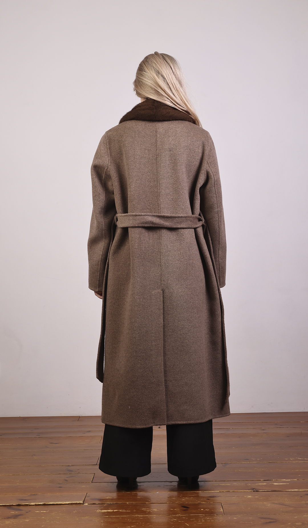 Структурированное пальто с чёткими плечами. Минималистичный дизайн.