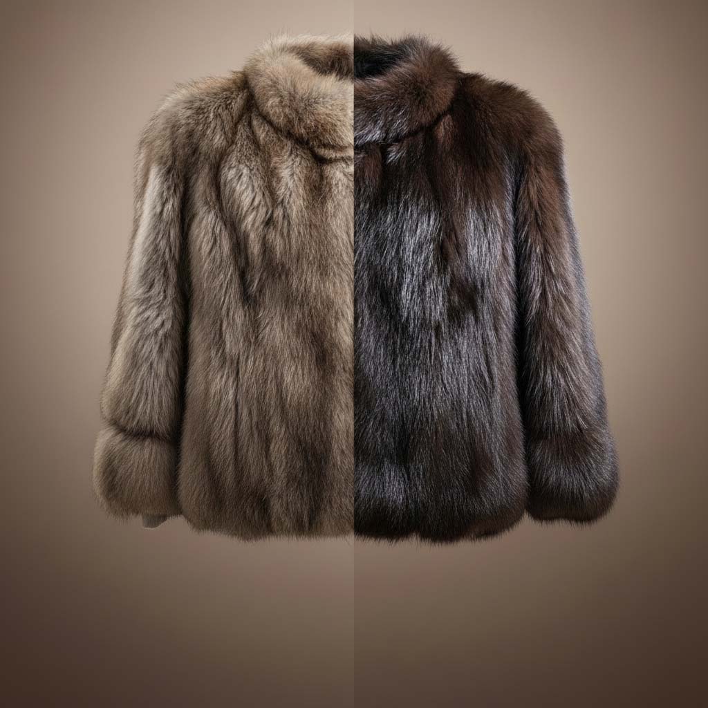Мех после чистки выглядит как новый — глубокий цвет и естественный блеск возвращаются.
