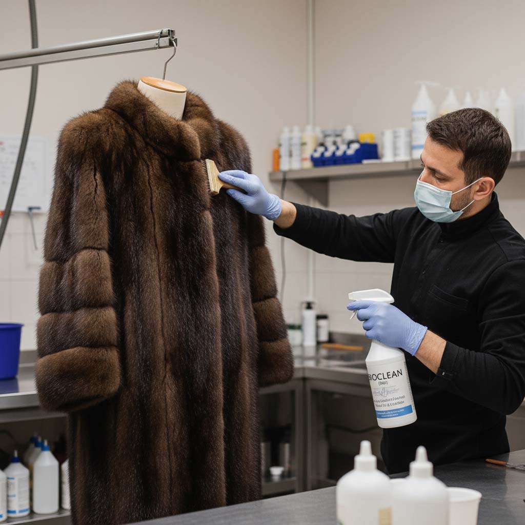Домашняя чистка меха крайне нежелательна. Народные средства — крахмал, бензин, уксус — могут повредить мездру, обесцветить ворс и оставить неприятный запах. Профессиональная химчистка шубы безопаснее и эффективнее: мастер подбирает состав под конкретный тип меха.